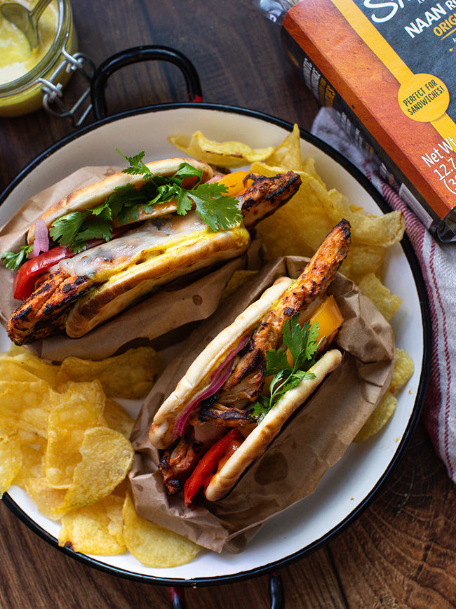 SAY GOODBYE to boring sandwiches and hello to a flavor-packed upgrade! This Grilled Chicken Sandwich with Mango Chutney & Curry Mayo brings together juicy, spice-marinated chicken, melty pepper jack cheese, tangy pickled onions, and a creamy curry mayo—all hugged between warm, toasty Stonefire® Naan Rounds. Sweet meets savory with a swipe of mango chutney, and fresh cilantro adds a burst...