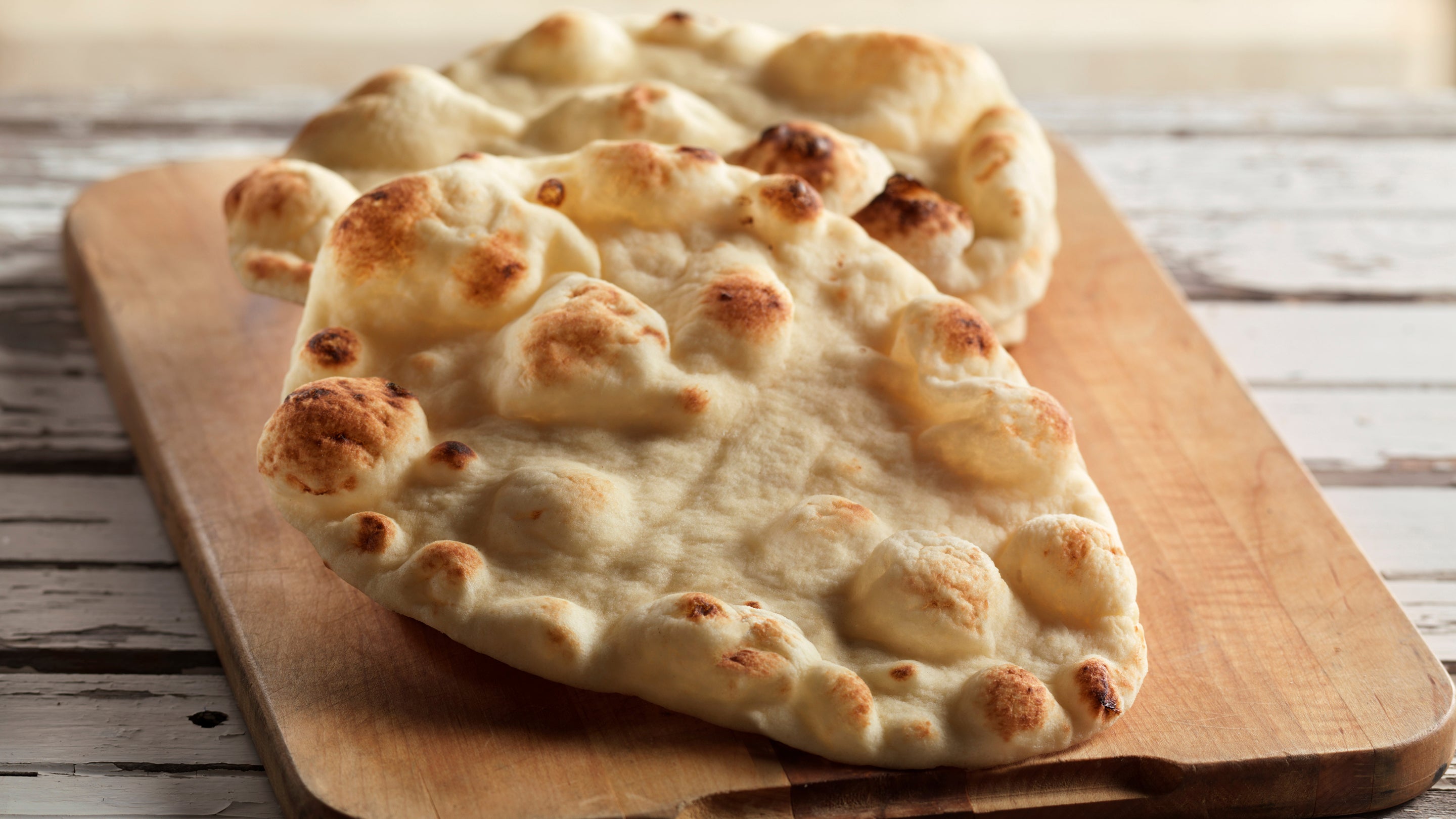 Authentic naan is crafted with fresh buttermilk and ghee (clarified butter) and is hand-stretched into its iconic teardrop shape, then kissed by fire in a high-heat oven, to give it that classic char and those unmistakable bubbles.