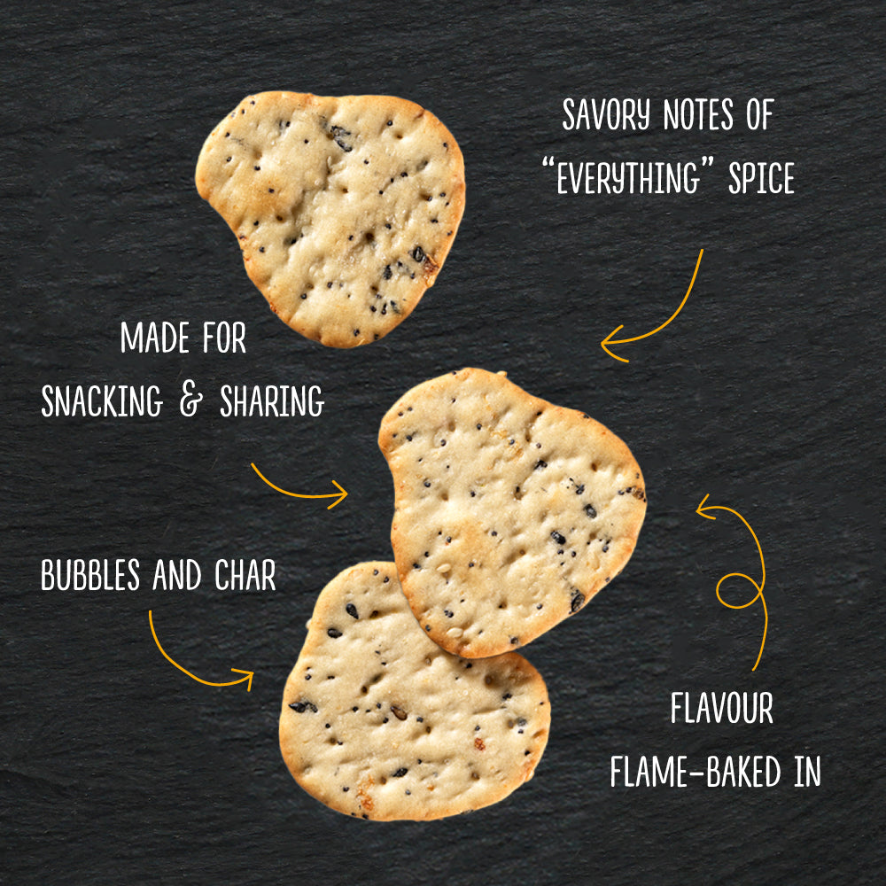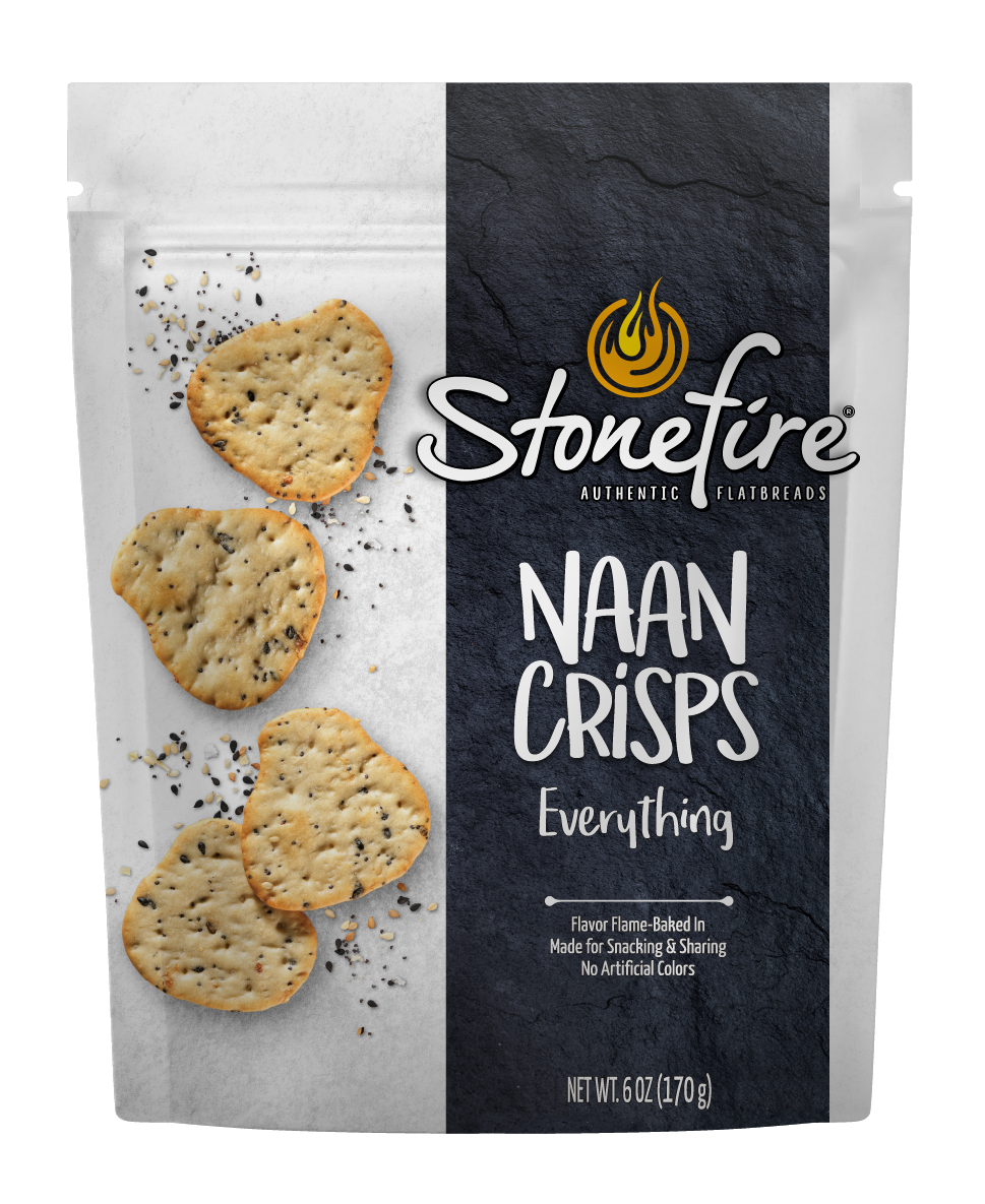Inspired by our authentic naan recipe, new Stonefire® Naan Crisps are perfectly sized snacks. With our signature bubbles, char and flavor flamed-baked right into every crisp, Stonefire® Everything Naan Crisps are a new delightful way to enjoy your favorite dips & spreads while enjoying the savory notes of “Everything” spice. Grab a handful to enjoy on the go or sit down with family or friends to savor the crunch. Bite after bite, crunch after crunch, Stonefire® Naan Crisps deliver simple and delicious snacking at its best!