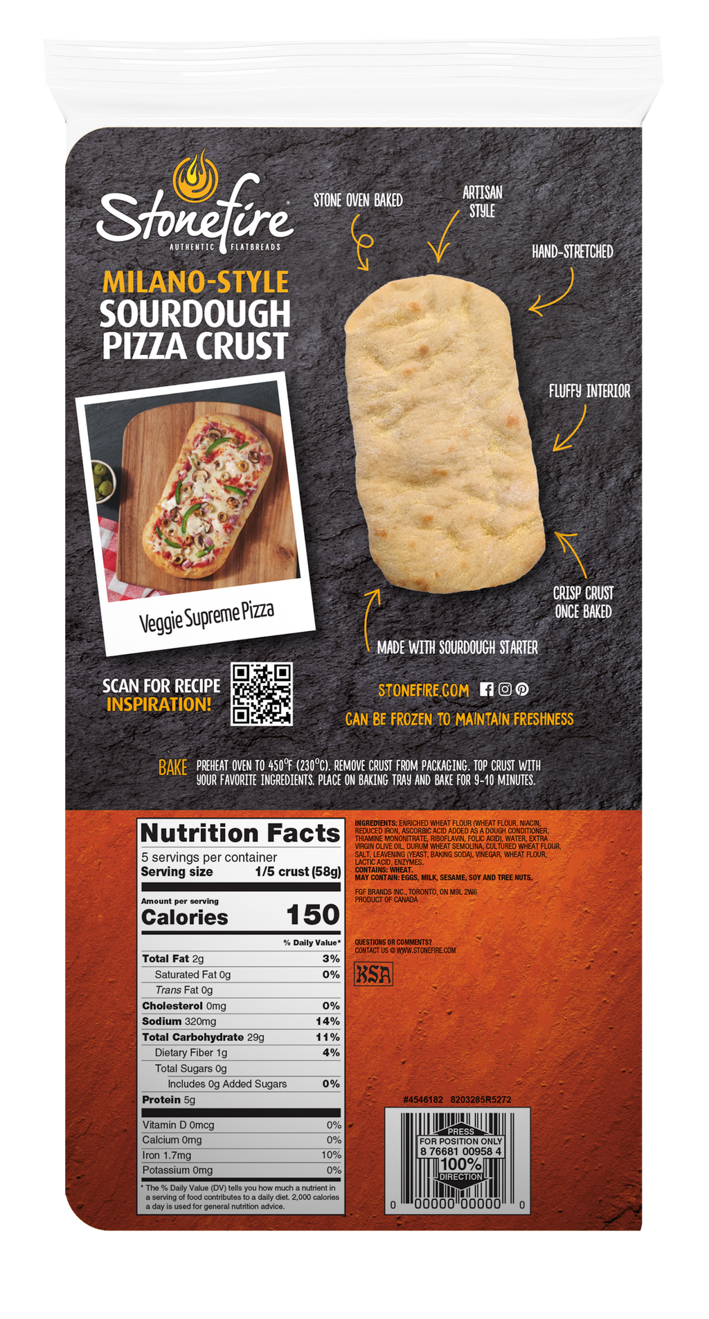 Soft with a crisp crust and chewy crumb. Our Milano Style Sourdough Pizza Crust delivers authentic flatbread flavor inspired by Italian baking traditions. Made with sourdough starter and artisan style techniques, each crust is hand dimpled and baked for light texture with a crisp oven baked edge. Perfect for creating homemade pizzas, this crust is easy to top, bake, and enjoy for a satisfying pizza night at home.