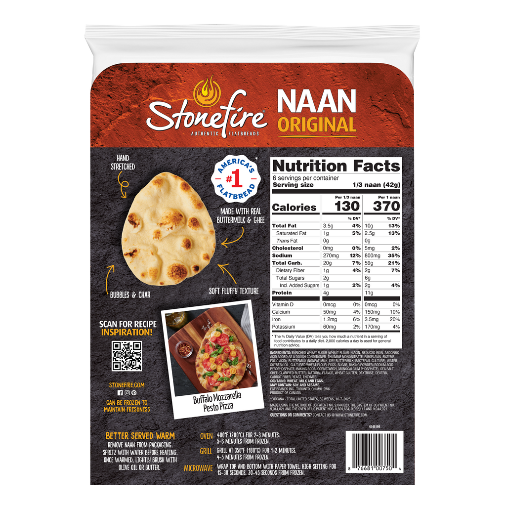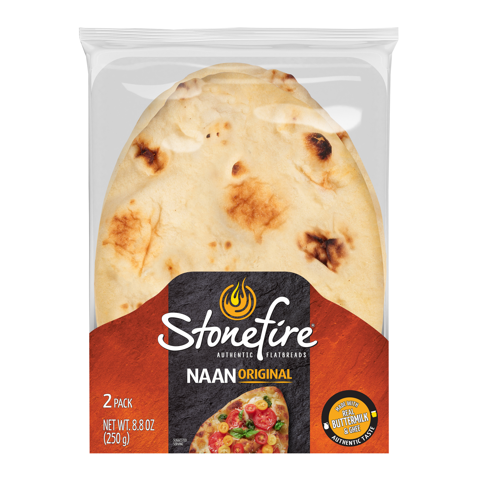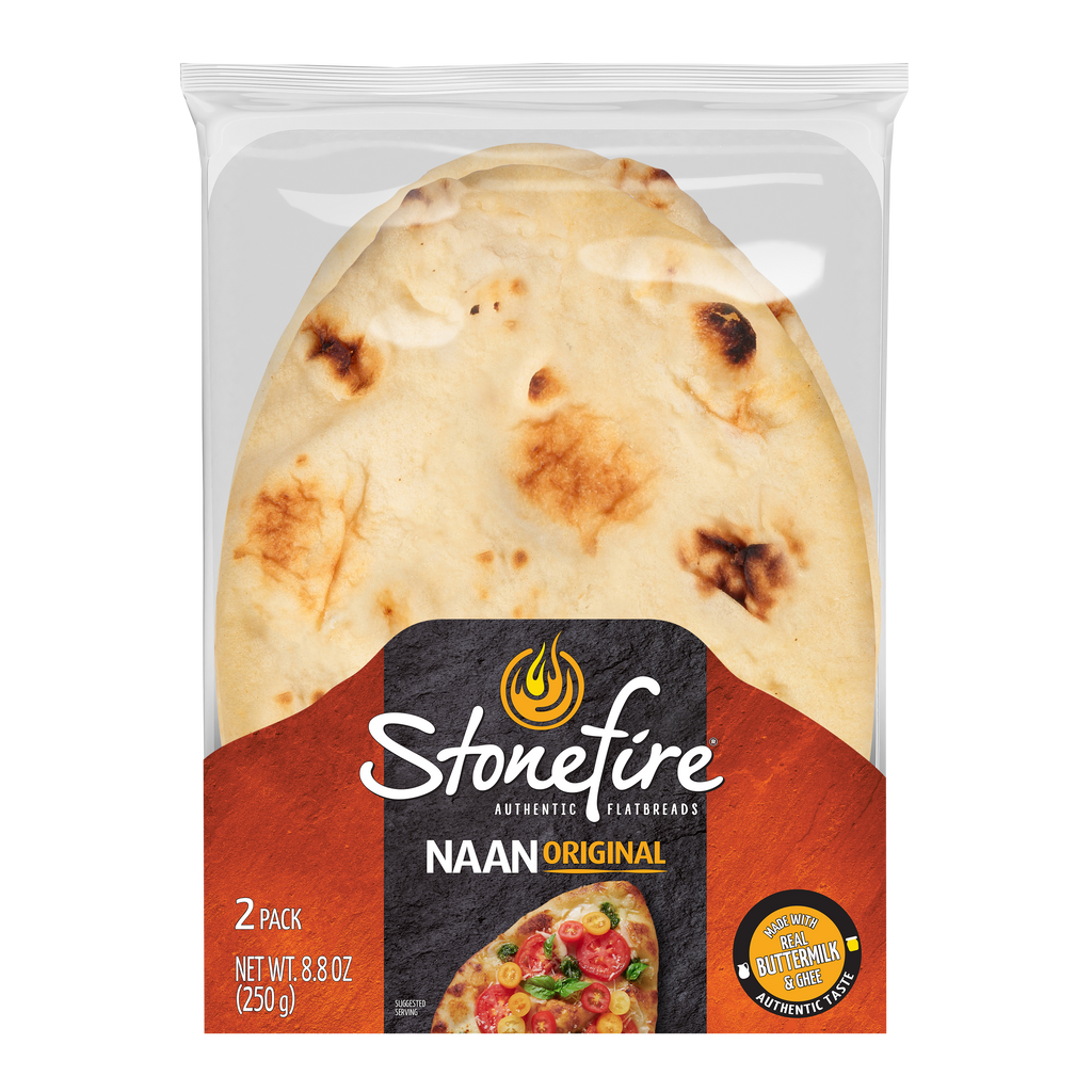 So soft, fluffy and buttery! The timeless taste of our Original Naan is always welcome at your table. We stay true to an ancient recipe by using fresh buttermilk, ghee (clarified butter) and hand stretching each naan into its unique teardrop shape. Then they’re baked in our patented tandoor tunnel oven to give the texture and taste of a traditional tandoor oven. Just heat and serve to make any meal special. 2 per pack.