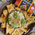 Indulge in the true flavors of Mexico with our Elote Corn Dip paired with Stonefire® Original Naan Triangles. This dip boasts a rich blend of buttery corn, creamy mayo, sour cream, cotija cheese, and vibrant ingredients like red onion, cilantro, garlic, jalapeño, lime, and Tajin seasoning. The Stonefire® Original Naan Triangles add a satisfying crunch and a subtle charm to the dip. You can also customize them with your favorite seasonings to enhance the flavor.