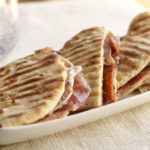 With the flavour of fire-roasted garlic and a hint of cilantro, Stonefire® Roasted Garlic Naan is a versatile and delicious base for an Italian Ham Panini. This simple flatbread recipe is packed with the flavour of Italian dry cured salami and melted provolone cheese to satisfy your most intense cravings. Don’t have a panini press on hand? In a pinch a grill pan, indoor grill or outdoor grill will give the naan panini a delicious crunch!