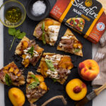 Savor summer with our quick and easy Peach Prosciutto Burrata Naan, featuring Stonefire® Original Naan. Indulge in the delightful blend of sweet peaches, savory prosciutto, and creamy burrata on soft flatbread, drizzled with balsamic glaze. Perfect for any occasion, this dish is ready in under 15 minutes. Elevate your meal with this celebration of summer, showcasing the incredible taste of naan bread.