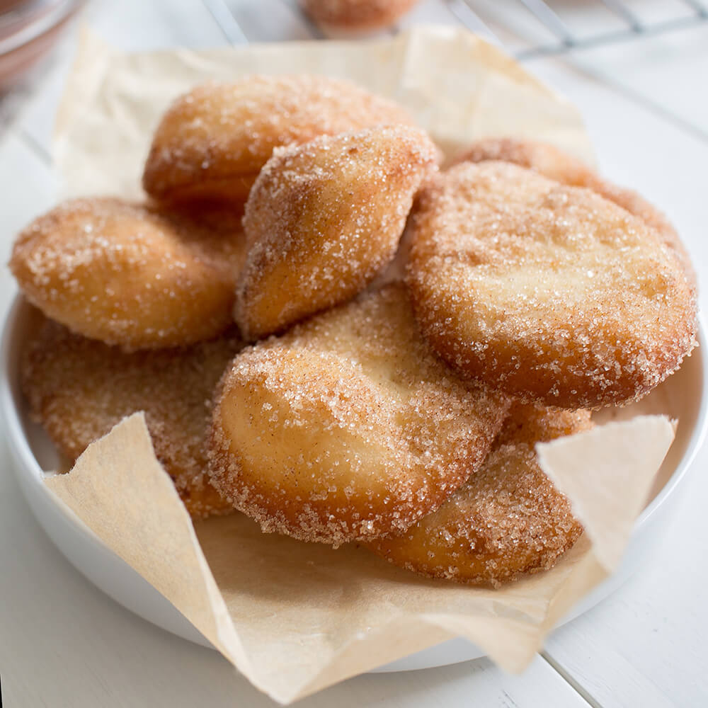 - Sprinkle with cinnamon sugar and toss until they are coated on both sides.